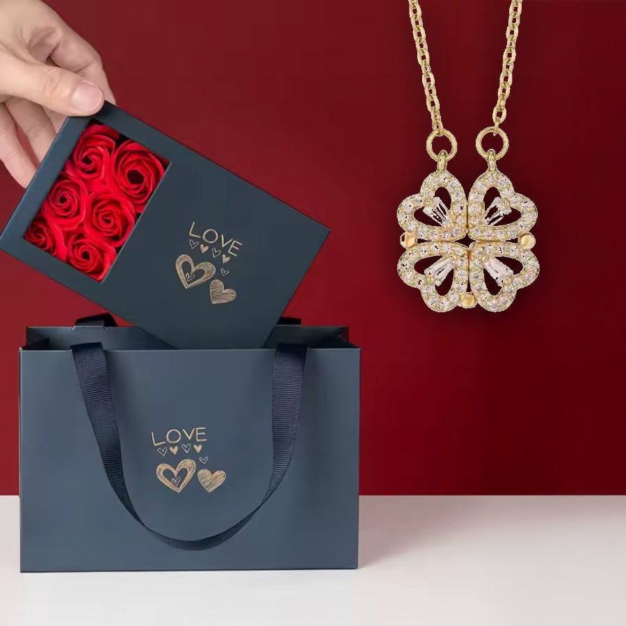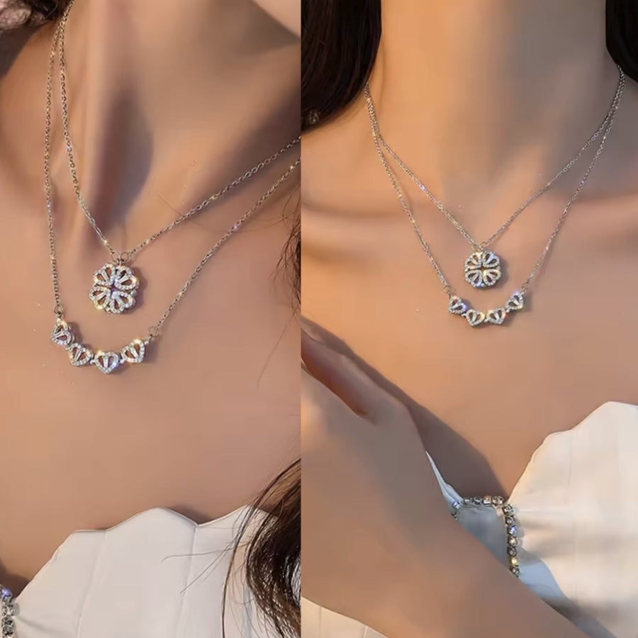 2-in-1 Magnet-Halskette im Kleeblatt- & Herzen-Stil