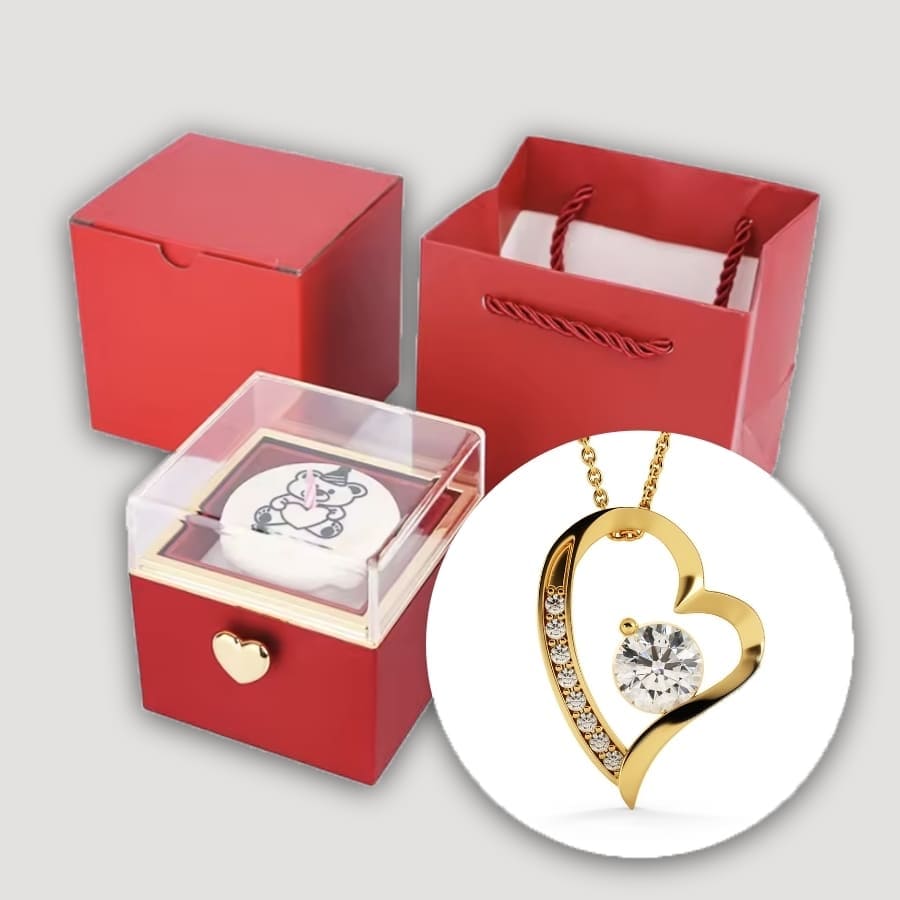 360 Grad Box mit Kerze - Zirkonia Herzhalskette