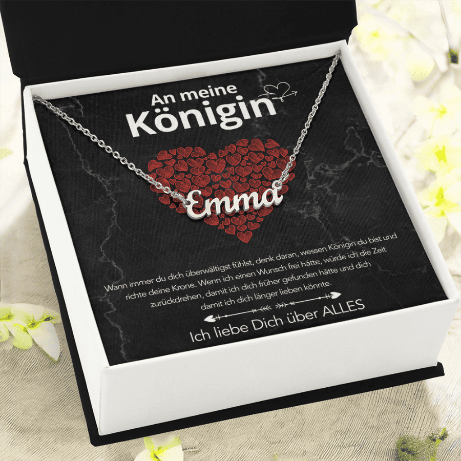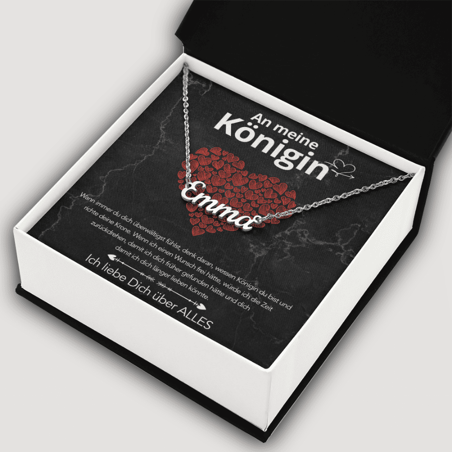 Entdecke die personalisierte Namenshalskette mit Botschaftskarte
