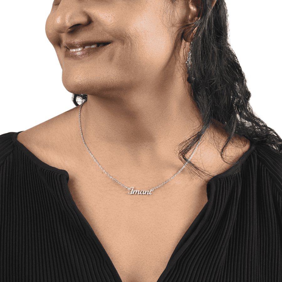 Die Namenshalskette wird mit deinem Wunsch-Namen personalisiert und ist damit ein einzigartiges Schmuckstück mit individueller Bedeutung.