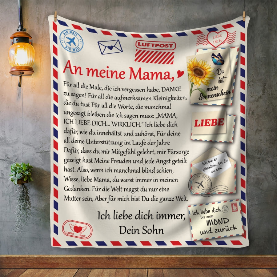 ✓ Weich & warm: Hergestellt aus hochwertiger Flanell-Mikrofaser – leichter als Baumwolle, atmungsaktiv und angenehm auf der Haut. ✓ Liebevolles Design: Bedruckt mit einer emotionalen Botschaft für deine Mama – ein täglicher Reminder für Liebe, Stolz und Geborgenheit. ✓ Vielseitig einsetzbar: Ob auf dem Sofa, im Bett, beim Lesen, Fernsehen, Camping oder Picknick – die Decke sorgt das ganze Jahr über für wohlige Wärme. ✓ Pflegeleicht & langlebig: Maschinenwaschbar bei 30 °C, trocknet schnell, behält Form und Farbe auch nach vielen Wäschen. ✓ Gesund & hautfreundlich: Frei von Chemikalien, sanft zu empfindlicher Haut, auch für Babys und Schwangere geeignet.