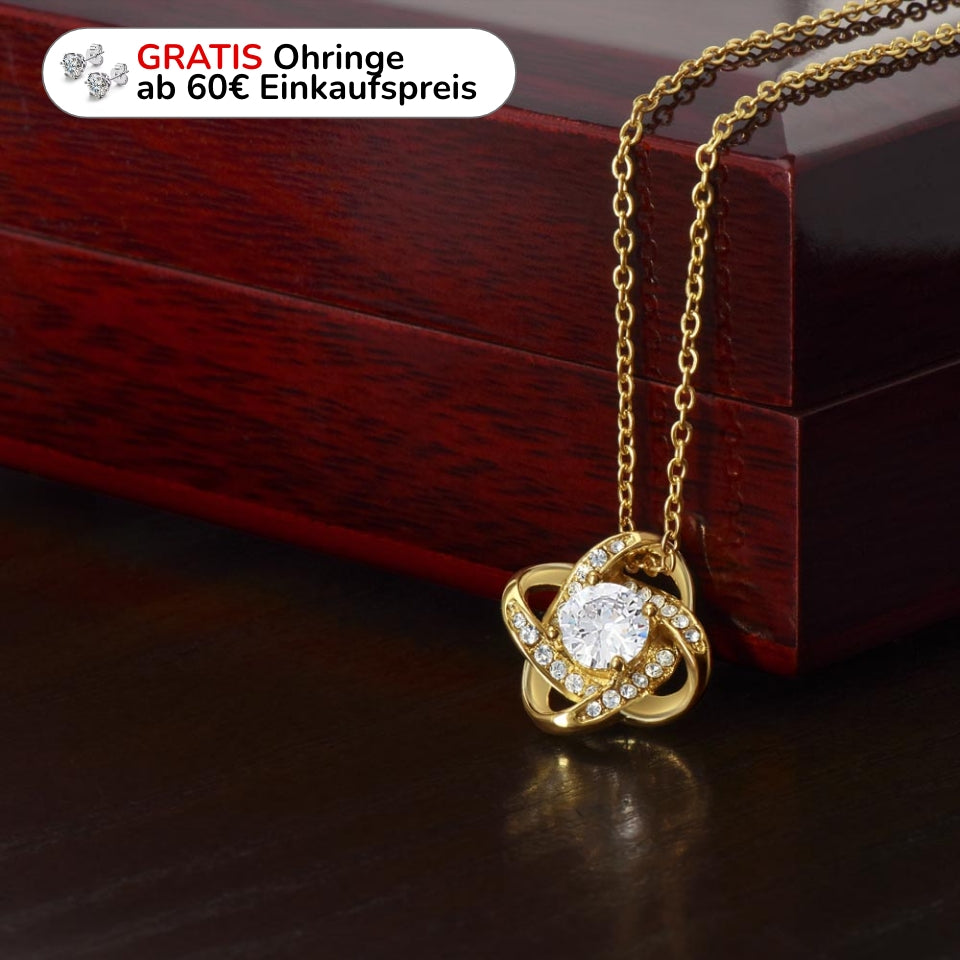 Der Forever Love Knot steht für eine tiefe Verbindung, die nicht gelöst werden kann. Der edel geschwungene Anhänger umfasst einen makellosen Zirkonia-Kristall mit 6 mm Durchmesser, der von fein gefassten Glanzsteinen umgeben ist – für ein elegantes Funkeln bei jedem Licht.