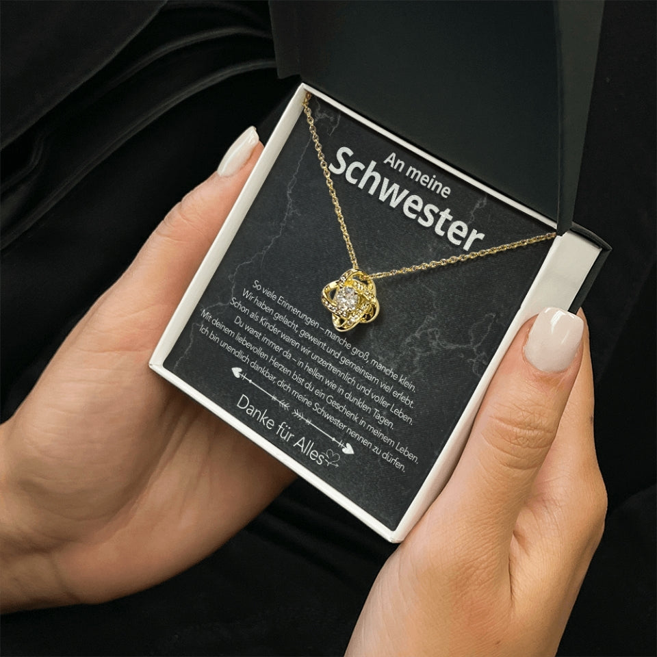 An meine Schwester - Knotenhalskette mit liebevoller Notiz