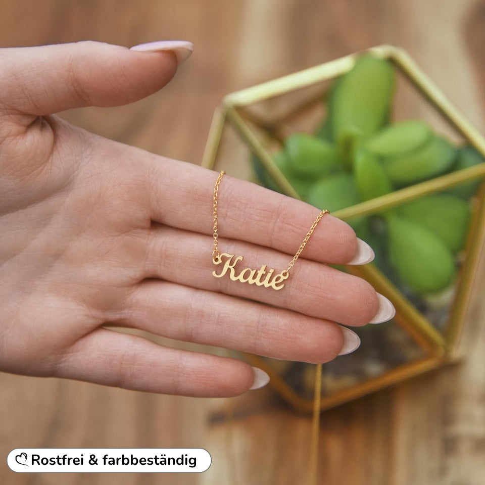 Die Namenshalskette wird mit deinem Wunsch-Namen personalisiert und ist damit ein einzigartiges Schmuckstück mit individueller Bedeutung.