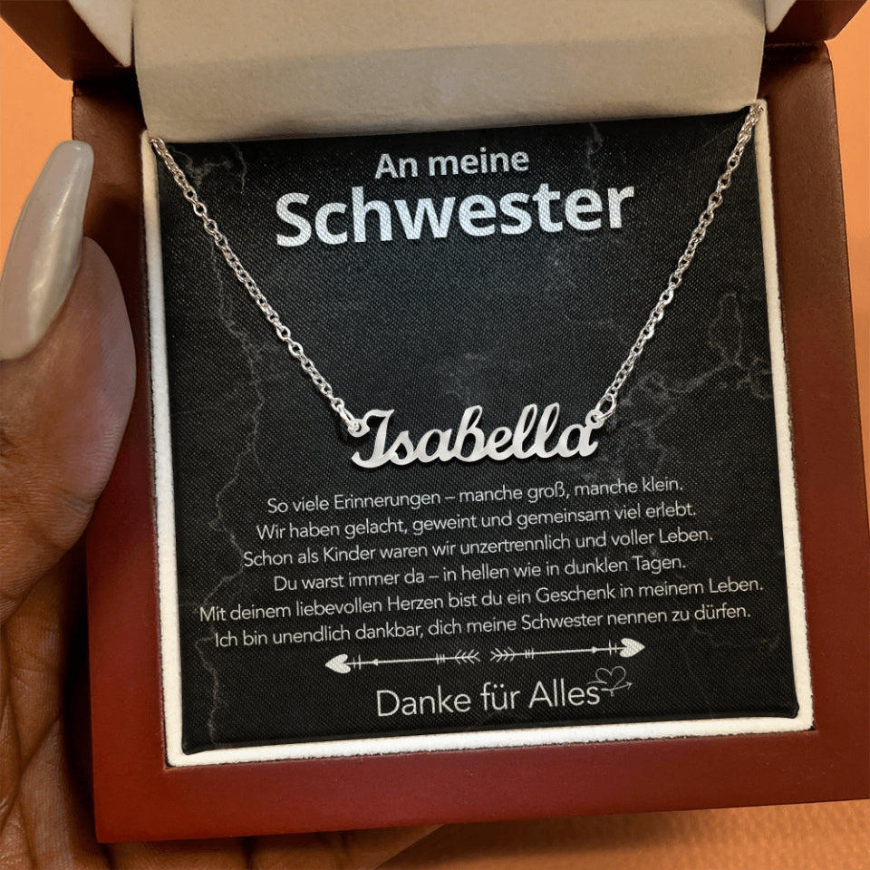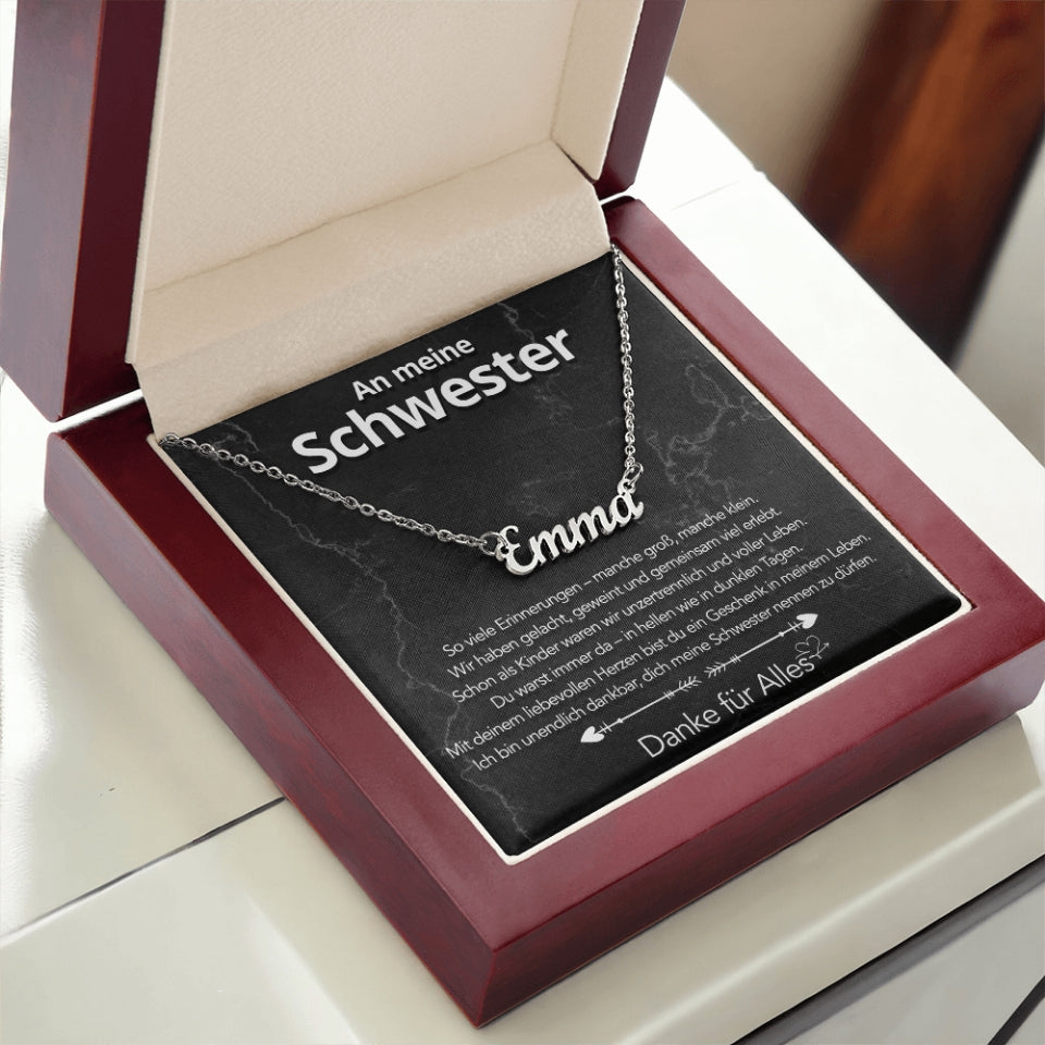An meine Schwester - Namenskette mit liebevoller Notiz
