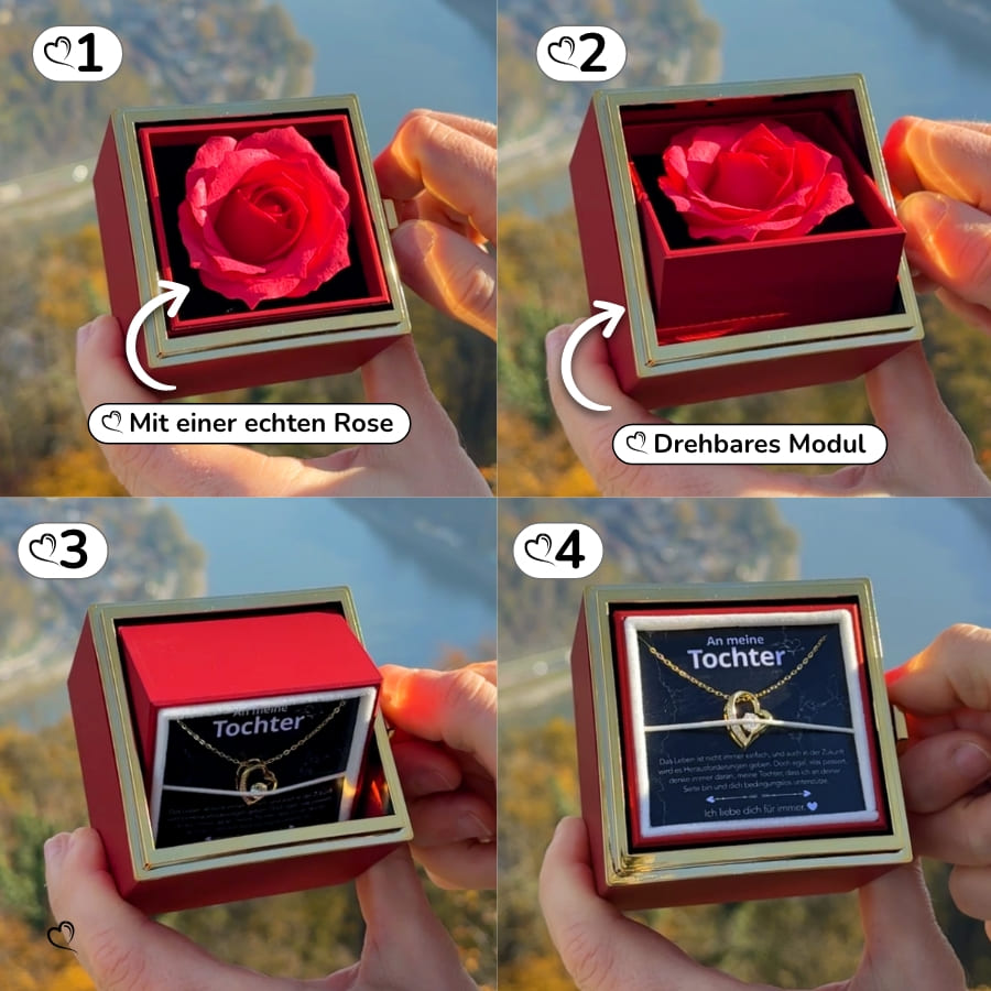 Erleben Sie die drehbare Rosenbox mit versteckter Halskette & Botschaftskarte