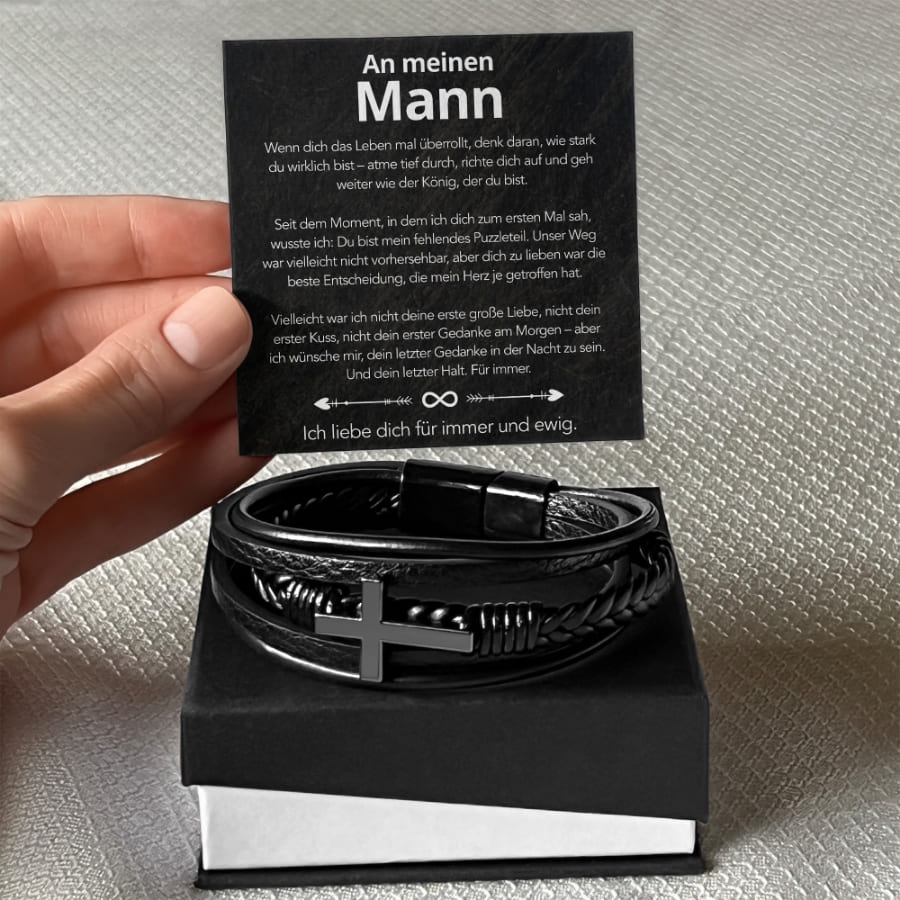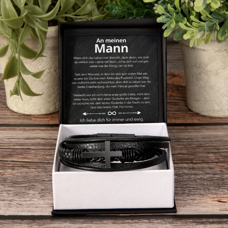 An meinen Mann - Herren Kreuz Armband mit liebevoller Karte