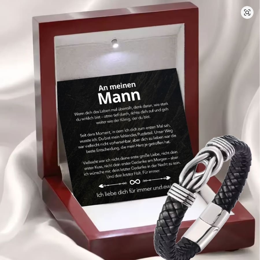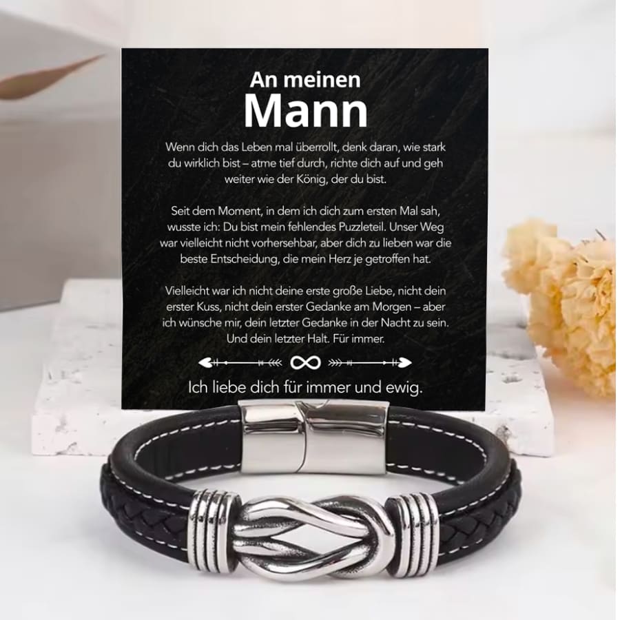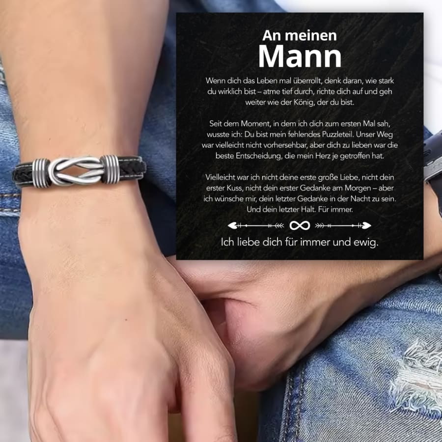 An meinen Mann - Geflochtenes Edelstahl Lederarmband