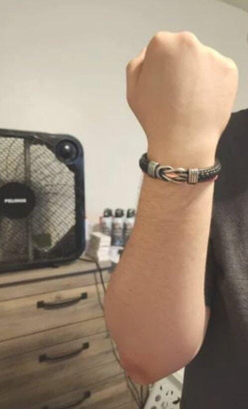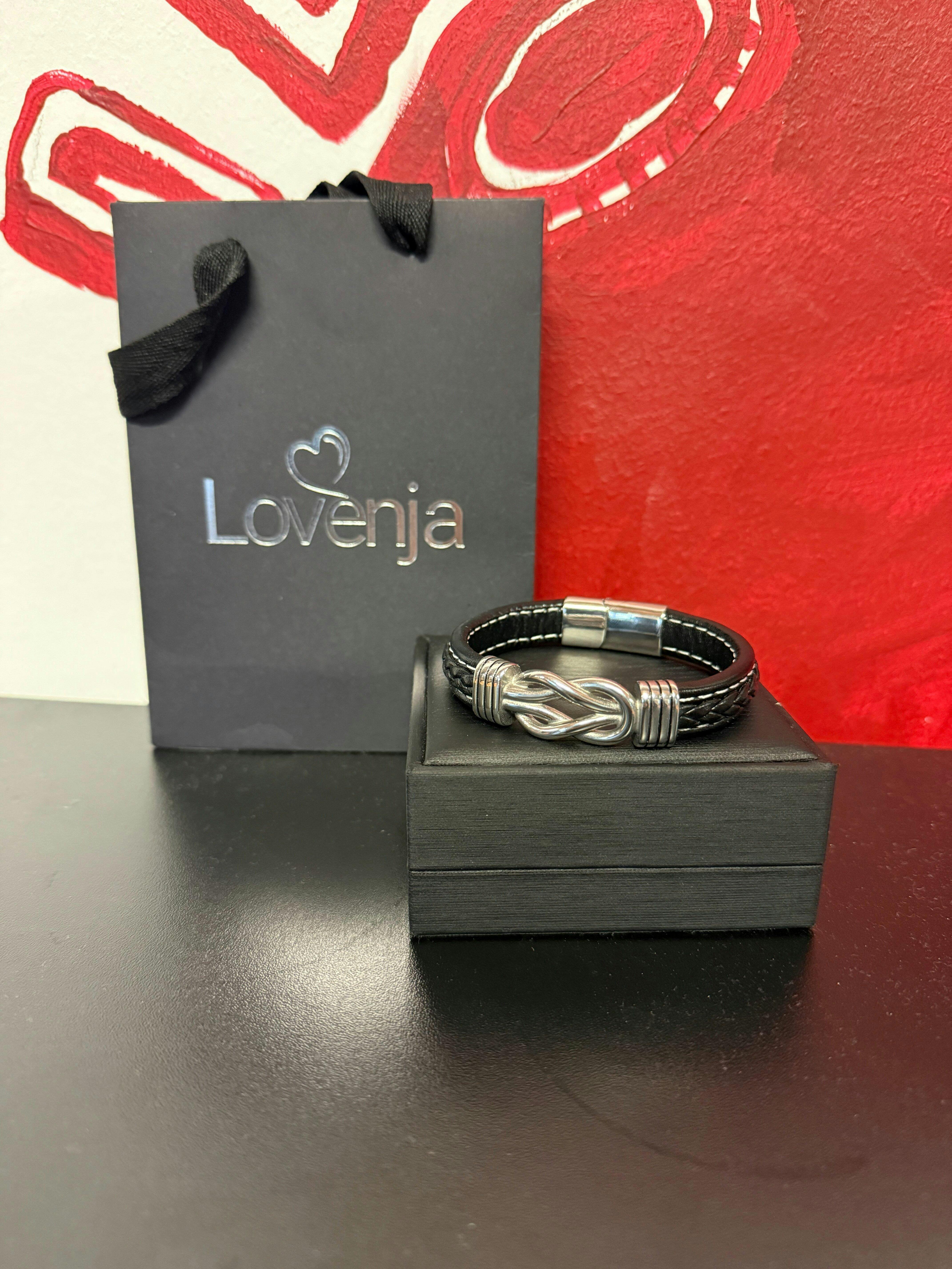 Das Twin Knot-Armband kombiniert echtes Leder mit einem markanten Knotenelement in glänzender Metalloptik – ein Symbol für Zusammenhalt und Stärke. Die Kombination aus glatter und geflochtener Lederstruktur mit kontrastierenden Nähten verleiht dem Armband einen modernen, maskulinen Look.