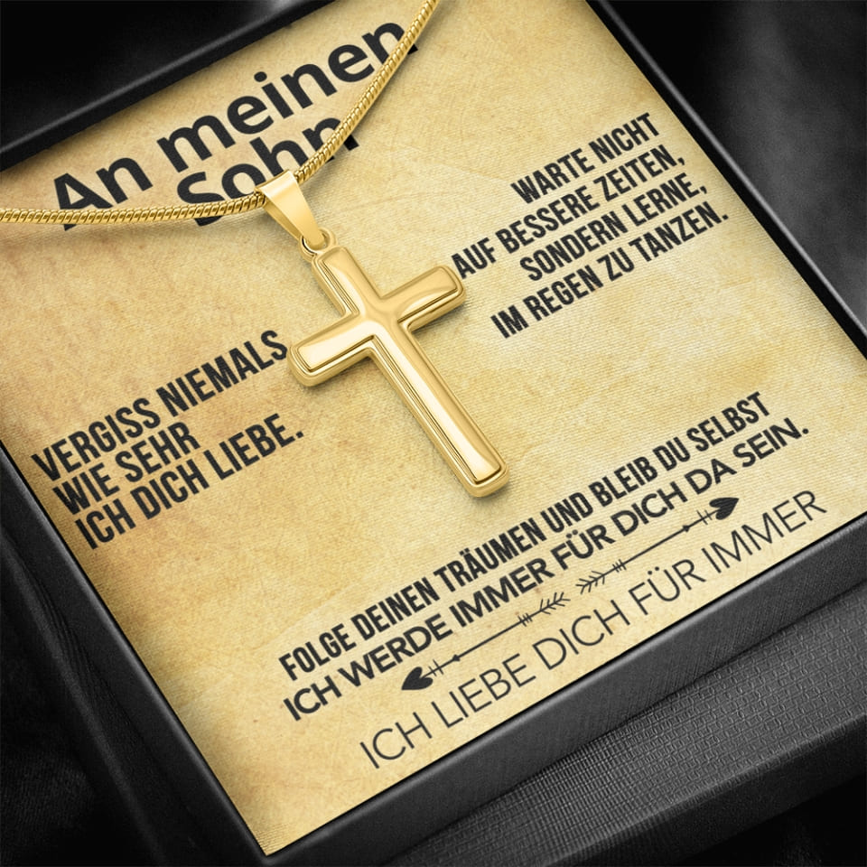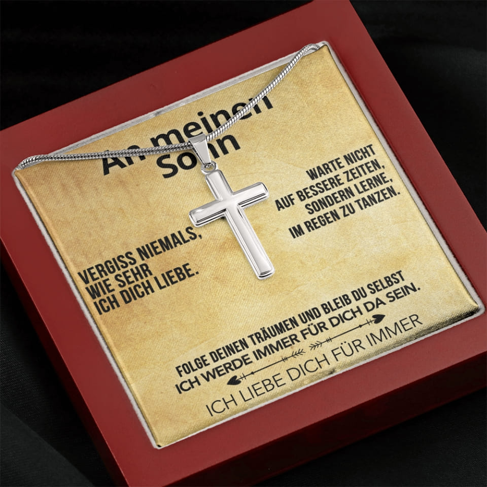 An meinen Sohn - Kreuzhalskette mit liebevoller Notiz