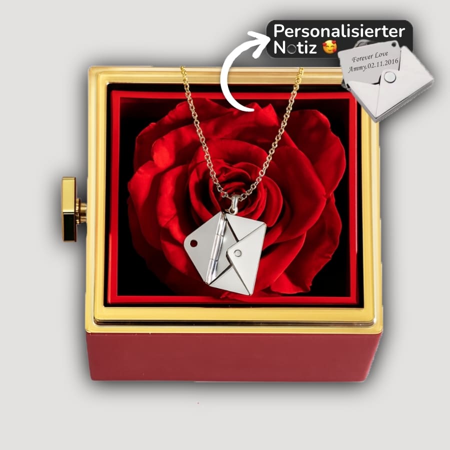 Personalisierte Halskette mit versteckter Liebesbotschaft in ewiger Rosenbox