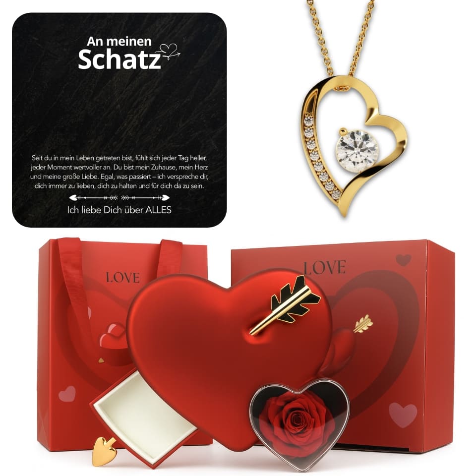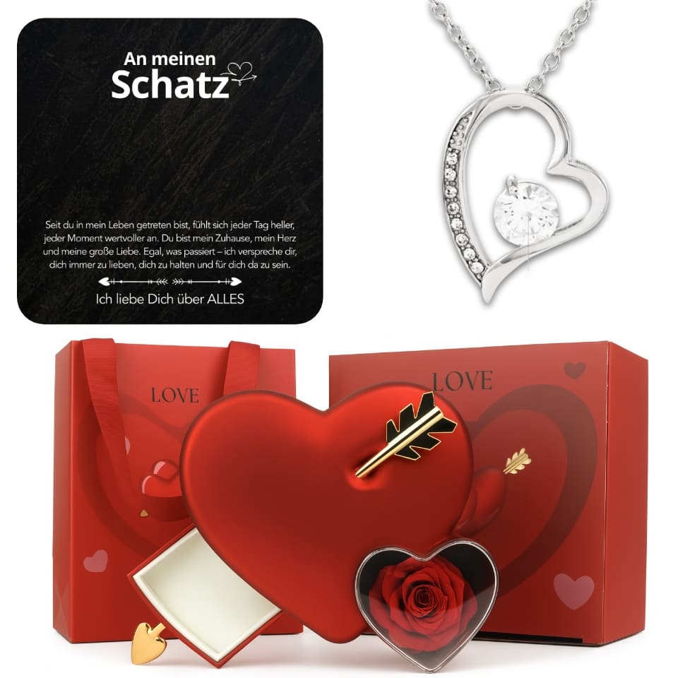 Ewige Amor-Rosenbox – Herzanhänger & liebevollen Notiz