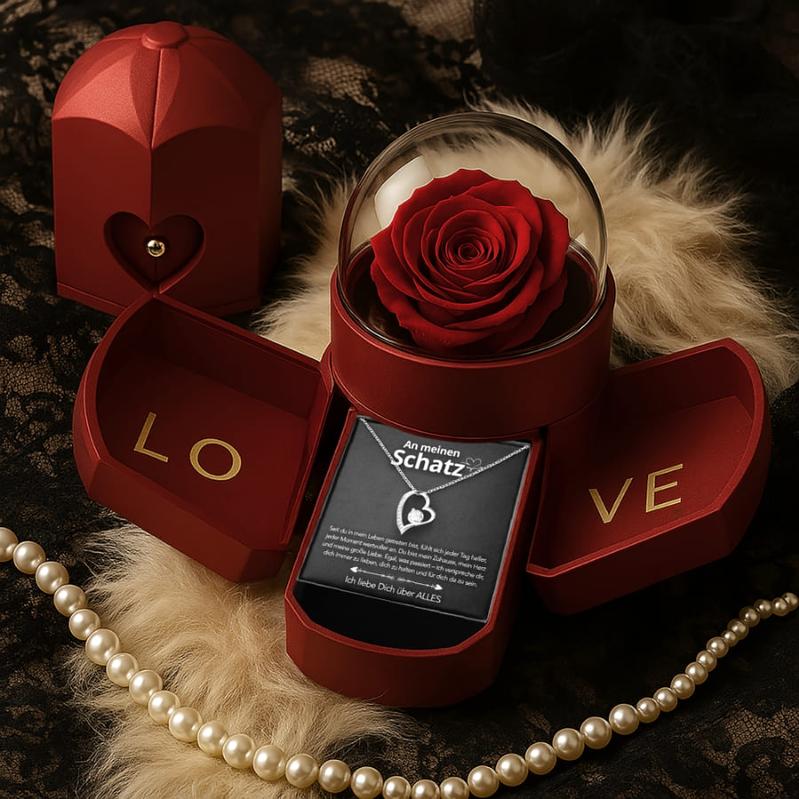 Schon beim Auspacken war meine Freundin total begeistert – die rote Rose in der Herzbox ist einfach wunderschön. Die Kette sieht hochwertig aus, und die Botschaft ist so emotional. Ich hätte nie gedacht, dass sie so gerührt reagiert.