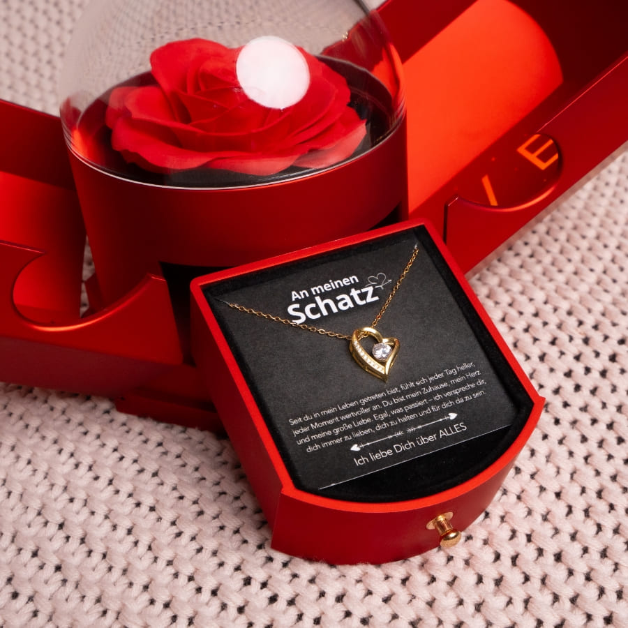 An meinen Schatz – Ewige Rose mit Herzkette & liebevoller Karte
