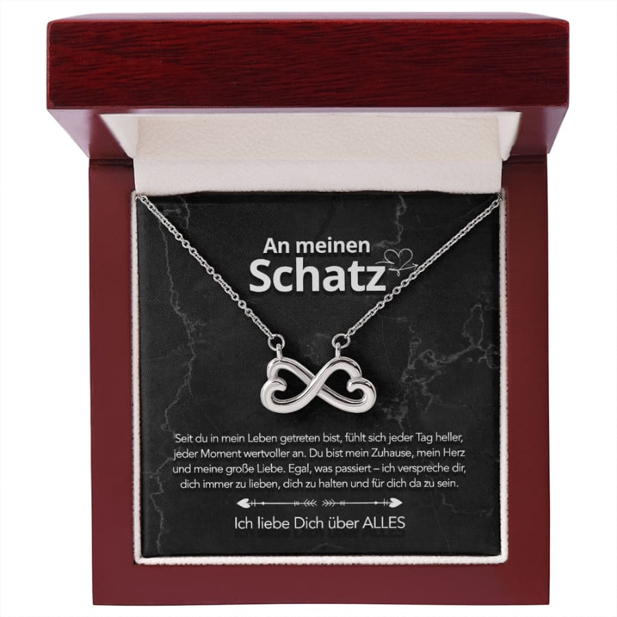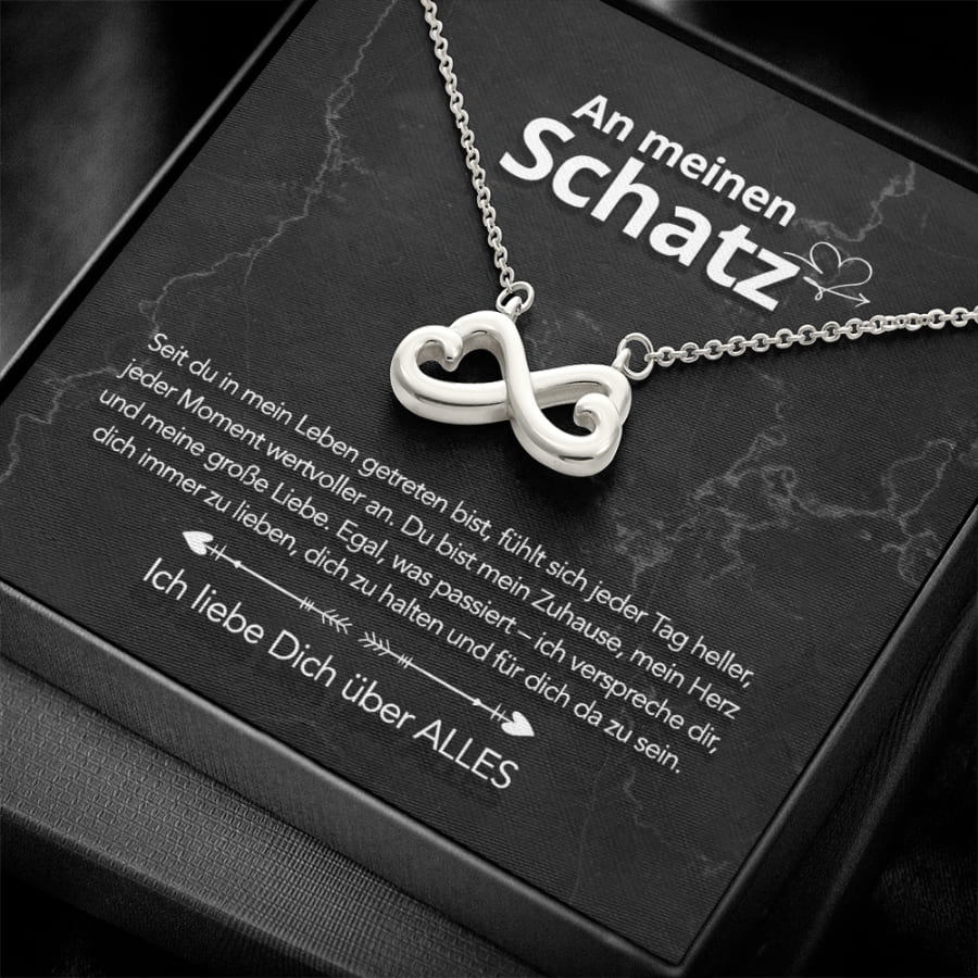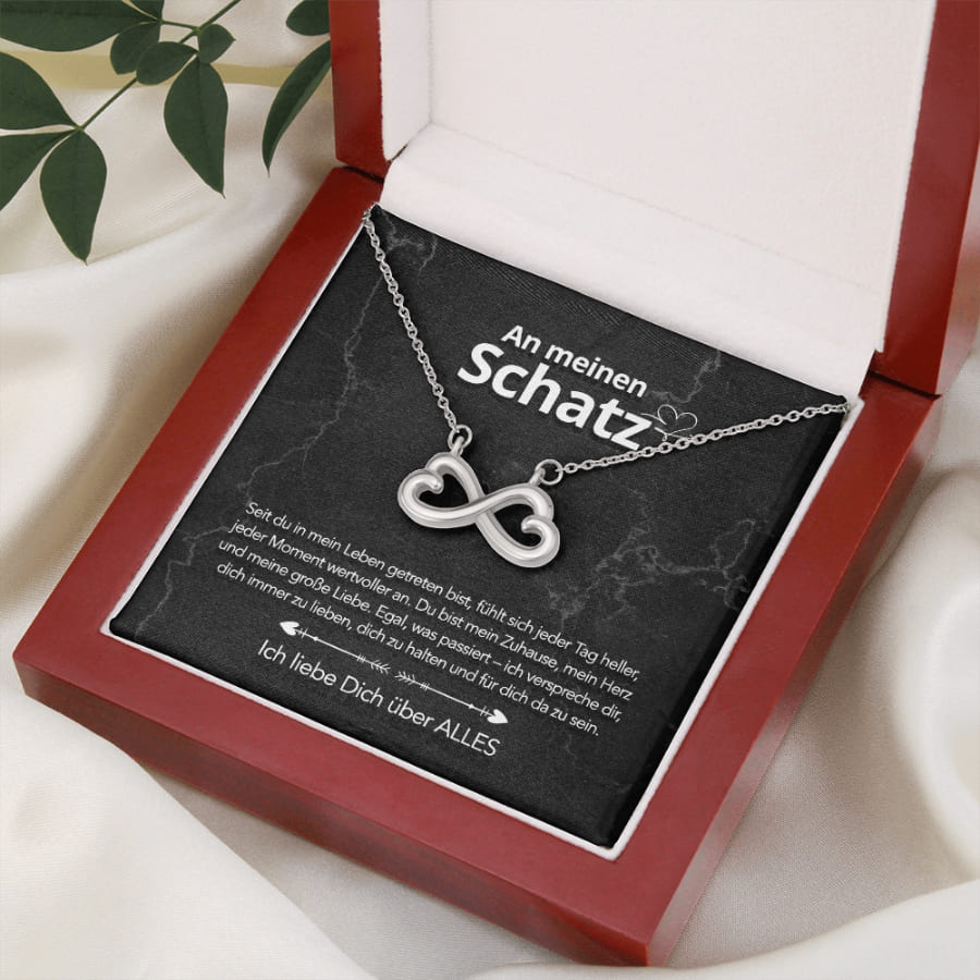 Für meinen Schatz – Unendlichkeits-Herzhalskette mit liebevoller Notiz