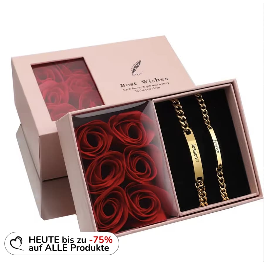 Graviertes Armband-Set für Paare – Mit ewiger Rosenbox