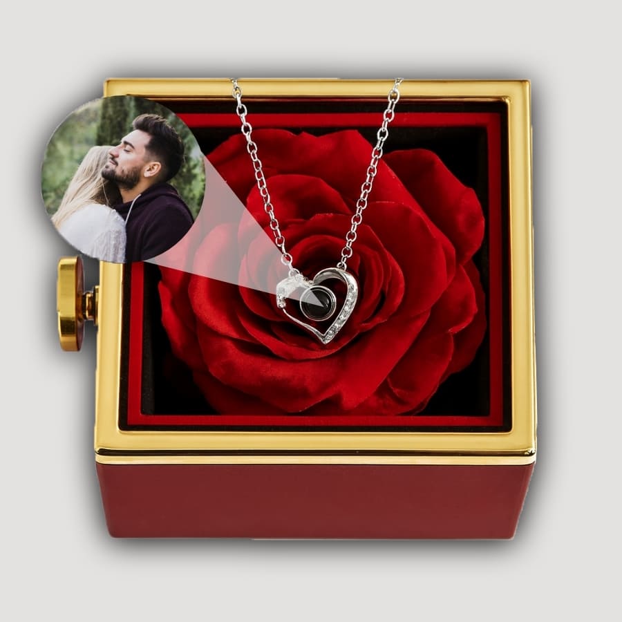 Foto Halskette mit deinem Lieblingsbild in ewiger Rosenbox – funkelndes Herz