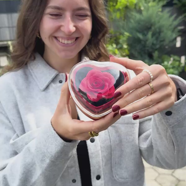 Entdecken Sie die herzförmige Box mit ewiger Rose und gravierter Halskette