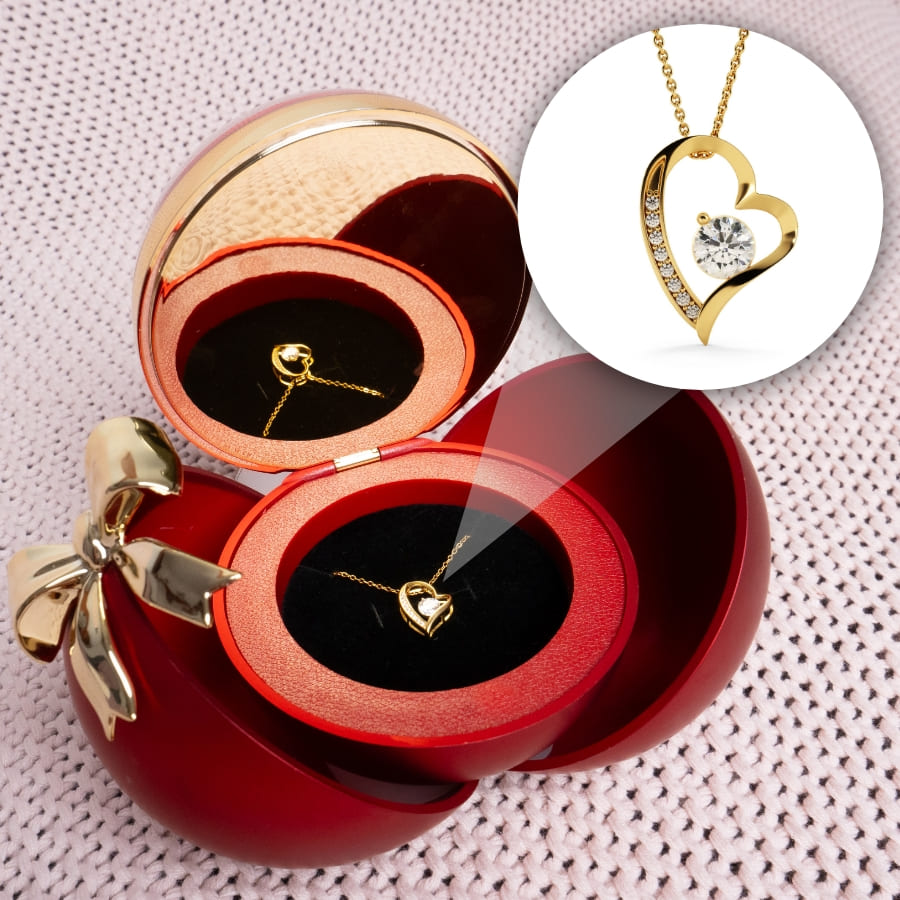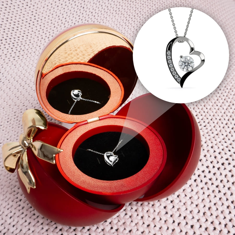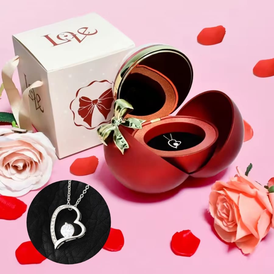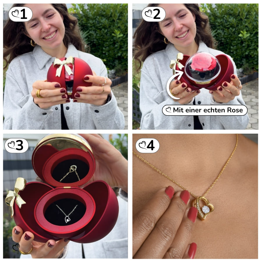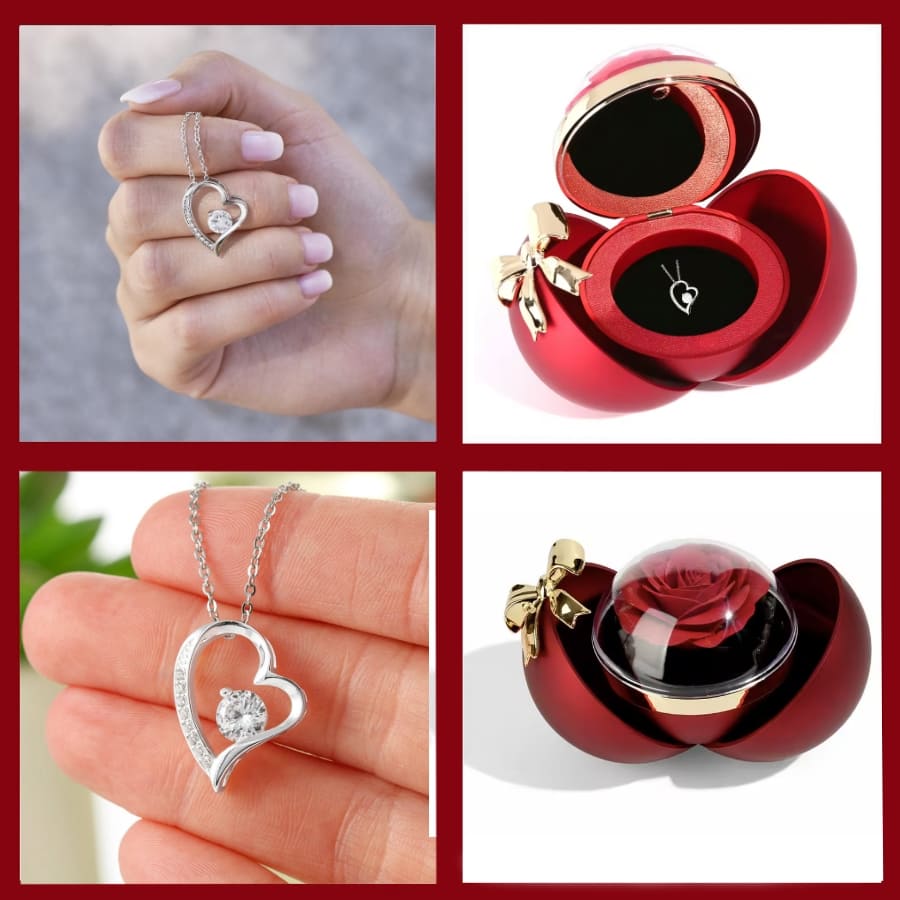 Ewige Rose in Kugelbox - Zirkonia Herzhalskette