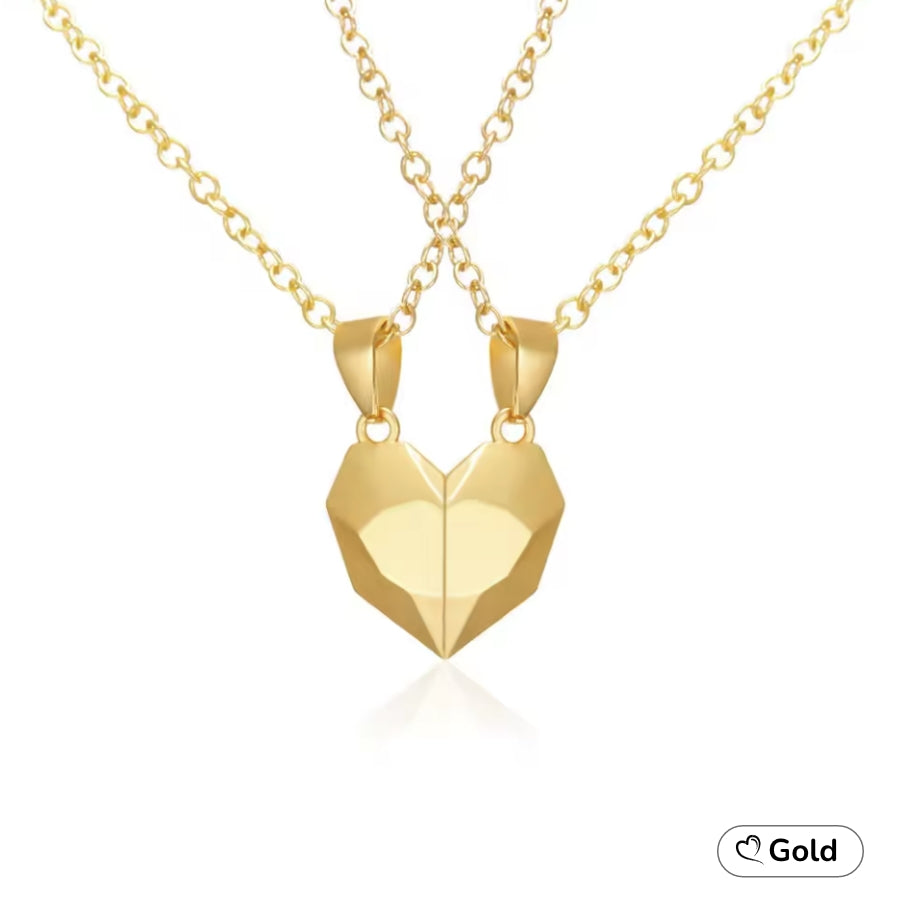 Die Partner-Herz-Halskette besteht aus zwei Hälften, die zusammen ein facettiertes Herz ergeben. Jede Hälfte kann einzeln getragen werden – als Zeichen für Nähe, Freundschaft oder Liebe, auch wenn man räumlich getrennt ist.