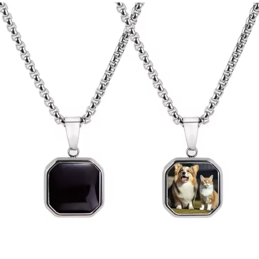 Im edel geschliffenen Anhänger verbirgt sich ein persönlich graviertes Foto, das erst bei Reibung oder Wärme sichtbar wird – ein magischer Moment, der überrascht und berührt.